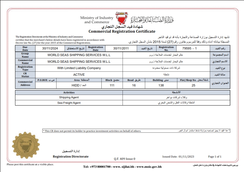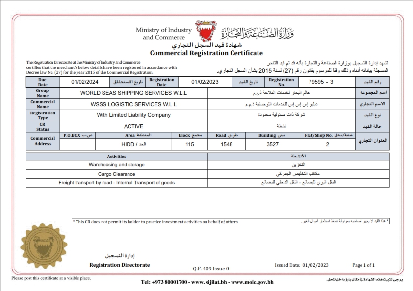 Office 24/25/26, Building 138, Road 16, Block 111, Hidd, Kingdom of Bahrain